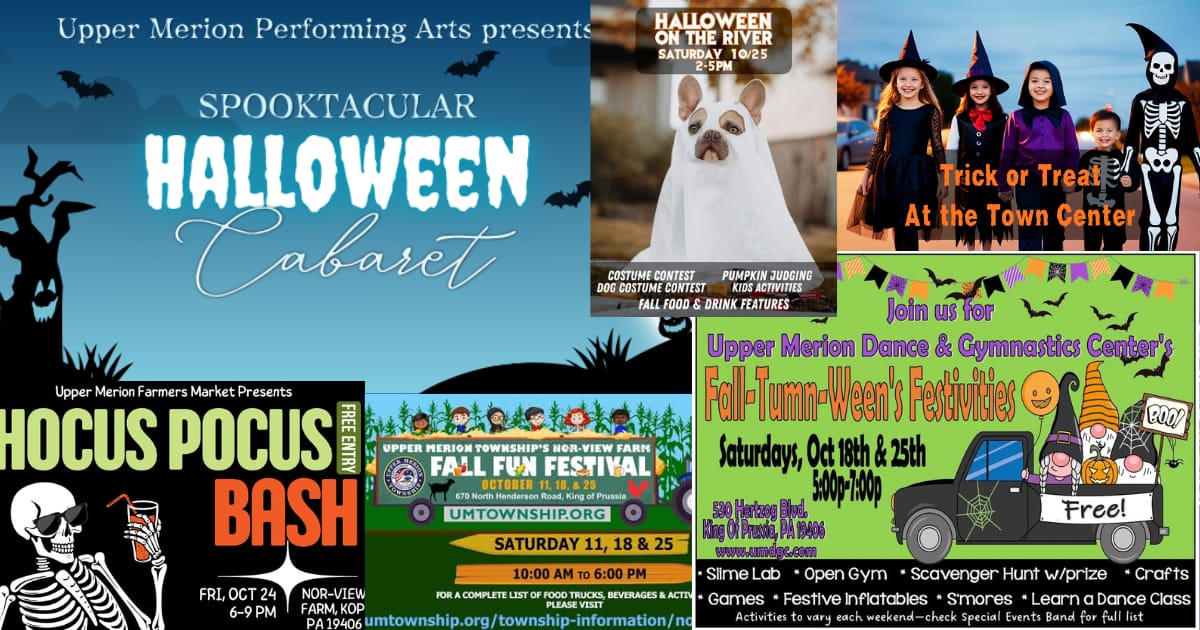 🎃 The Upper Merion Area is packed with fall fun this week! Kick things off Friday night at the Hocus Pocus Bash at Nor-View Farm—an evening of music, food, and Halloween spirit with free entry. Then come back Saturday for the Fall Fun Festival (the final one), filled with food trucks, inflatables, games, and autumn activities for all ages. Over at UMDGC, Fall-Tumn-Ween’s Festivities bring slime labs, crafts, scavenger hunts, and more. There’s also Halloween on the River at Puddler’s Kitchen and Tap with costume contests and pumpkin judging, plus the Spooktacular Halloween Cabaret, presented by Upper Merion Performing Arts, for a hauntingly good performance. 🍁 Get out, have fun, and celebrate local this weekend!